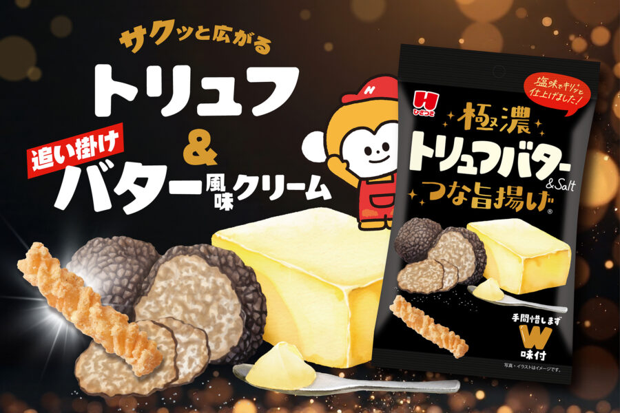ひざつき製菓株式会社(本社:栃⽊県栃⽊市、代表取締役:膝附 武男、以下 ひざつき製菓)は『極濃トリュフバターつな旨揚げ』を2025年9⽉23日(火)より順次、全国のローソン店舗で先行発売します。
