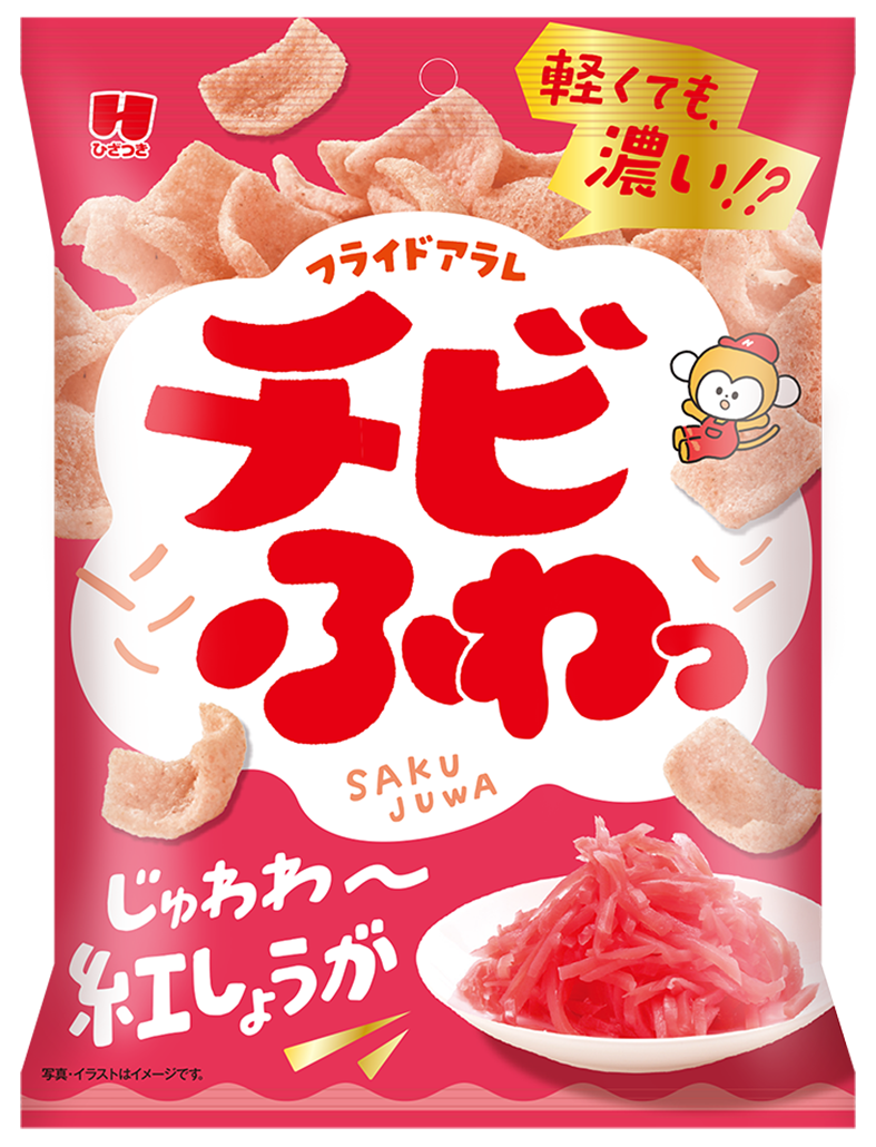 - 濃厚な紅ショウガ感が味わえるサクサクの揚げ煎餅です。