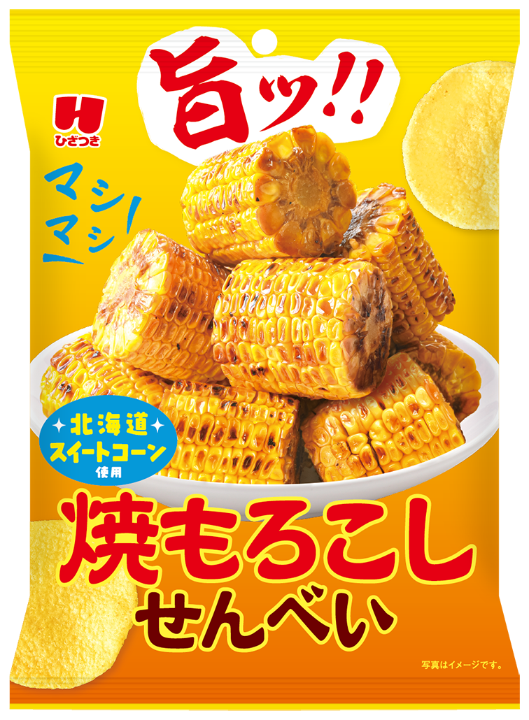 - 思わず「旨ッ!!」と声が出る、濃厚焼もろこしせんべい。